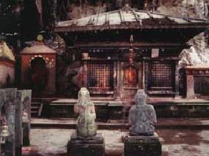 Once through the gates of the digitized monastery, a courtyard materializes. It seems very old and yet it is clean and comfortable. It is as if the program knew exactly what comforts shelter from the storm. Just ahead there is a small fractal mandala meditation area. Beyond and to the right a door. |